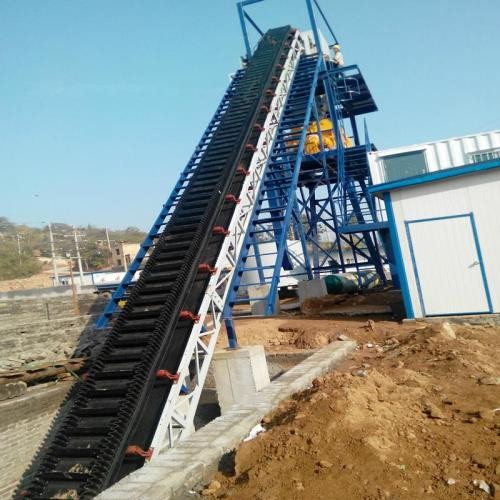 波狀擋邊輸送帶:在輸送機中起曳引和承載作用。波狀擋邊、橫隔板和基帶形成了輸送物料的"閘"形容器,從而實現大傾角輸送。